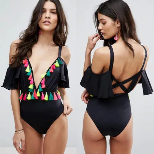 Cheap one-piece suit, Buy Quality swimsuit swimsuit directly from China swimsuit v Suppliers: New Women One-Piece Suits Deep V Tassels Ruffles Off Shoulder Bandage Bikini Bright Tassel Trim Batwing Drape Swimsuits Enjoy Free Shipping Worldwide! Limited Time Sale Easy Return.