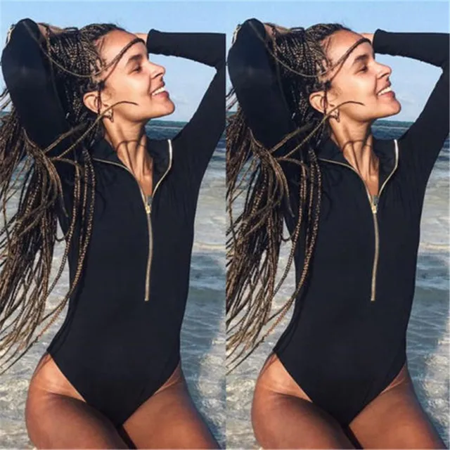 Special Offers New Women's One-Piece Suits Long Sleeve Swimsuit Bandage Bathingsuit Short Romper